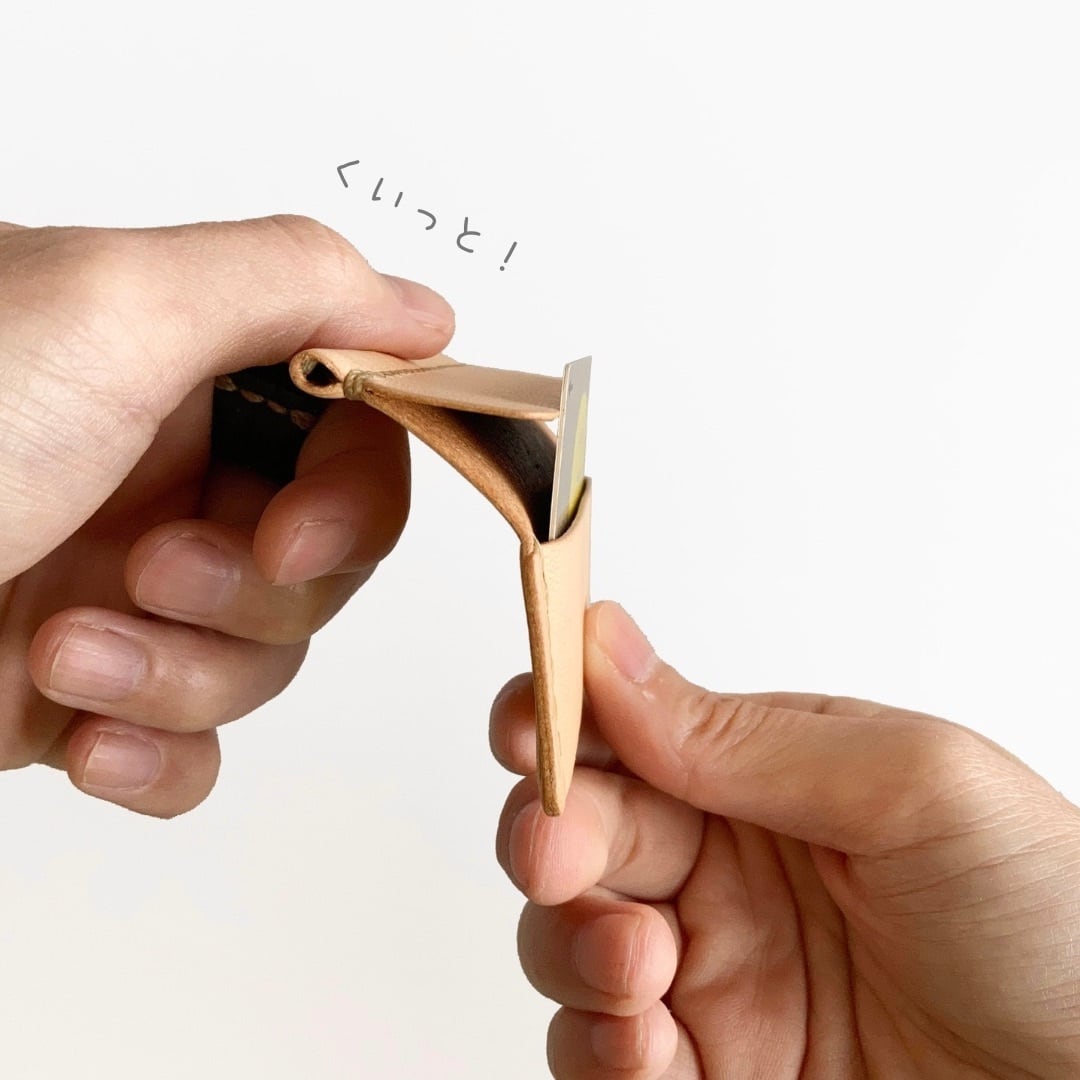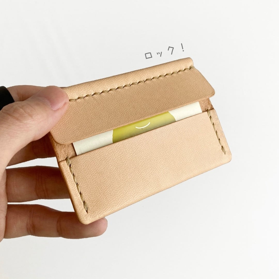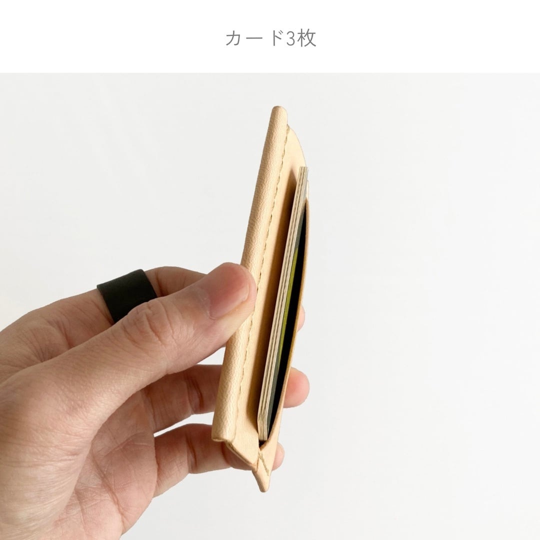 革 レザー 手縫い 手作り ハンドメイド 日本 職人 作家 レザークラフト ハンドクラフト 手仕事 革細工 革小物 ギフト プレゼント 誕生日 記念日 クリスマス 新年 バレンタインデー ホワイトデー 新生活 シンプル ミニマム ナチュラル 軽い 金具なし カードケース キャッシュレス クレジットカード ICカード 定期 仕切り 薄い ベージュ きなり