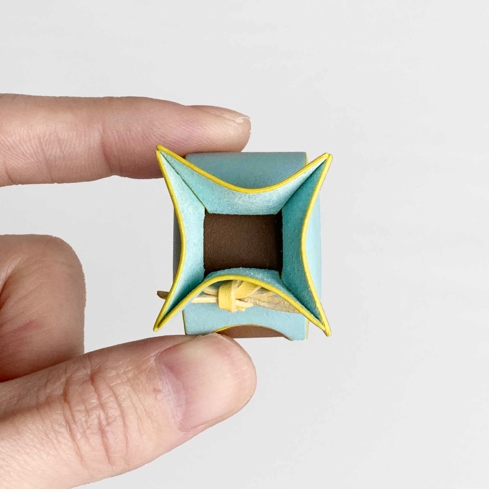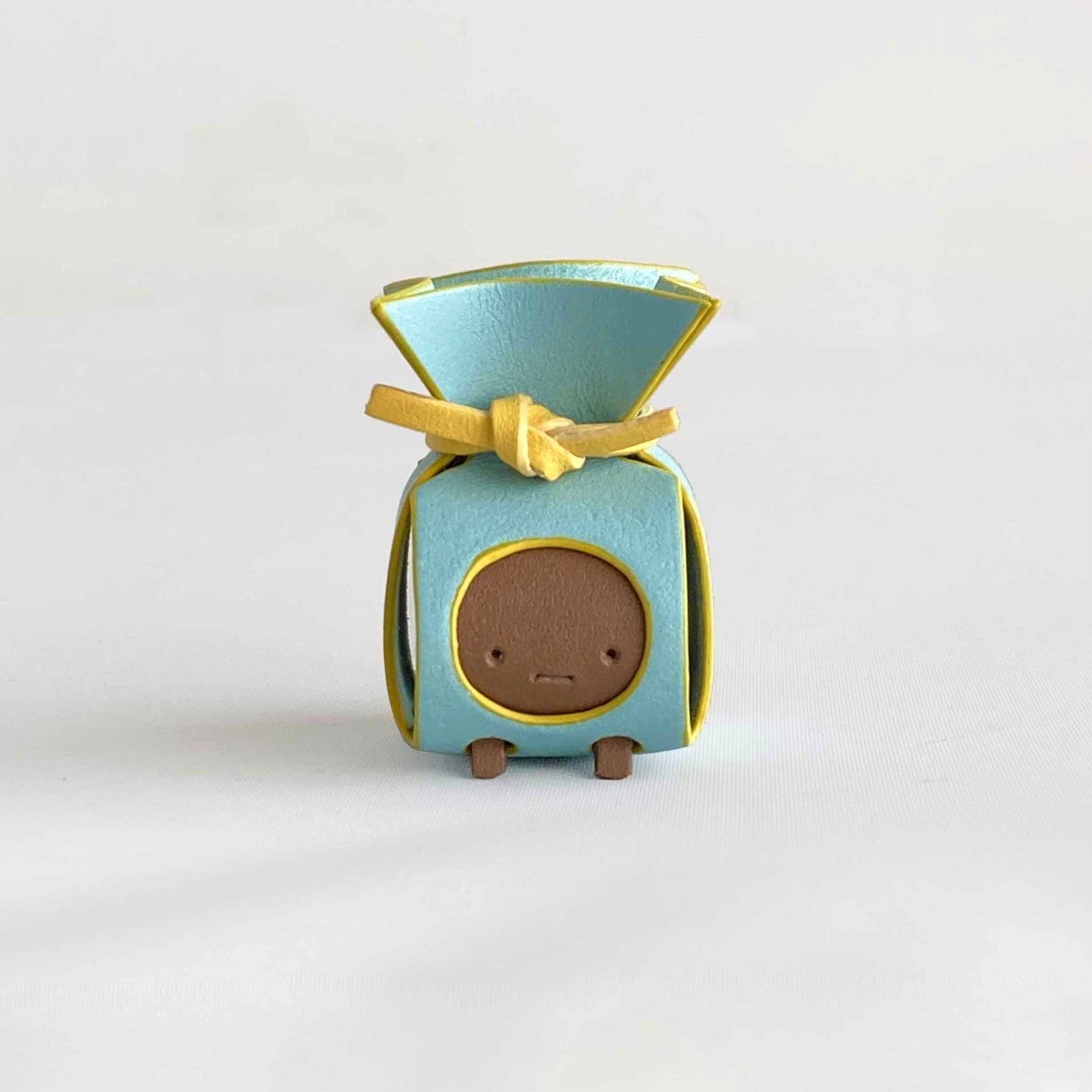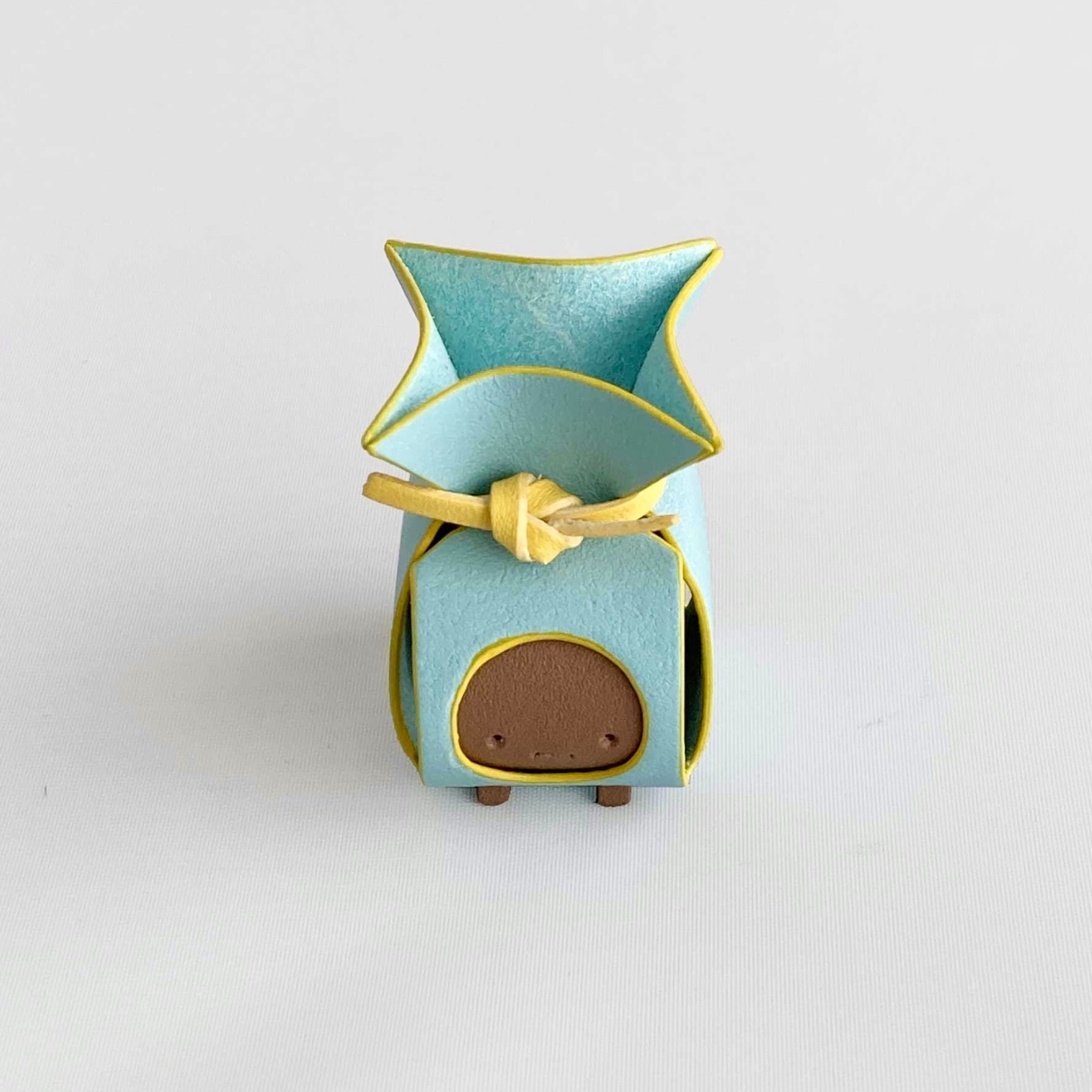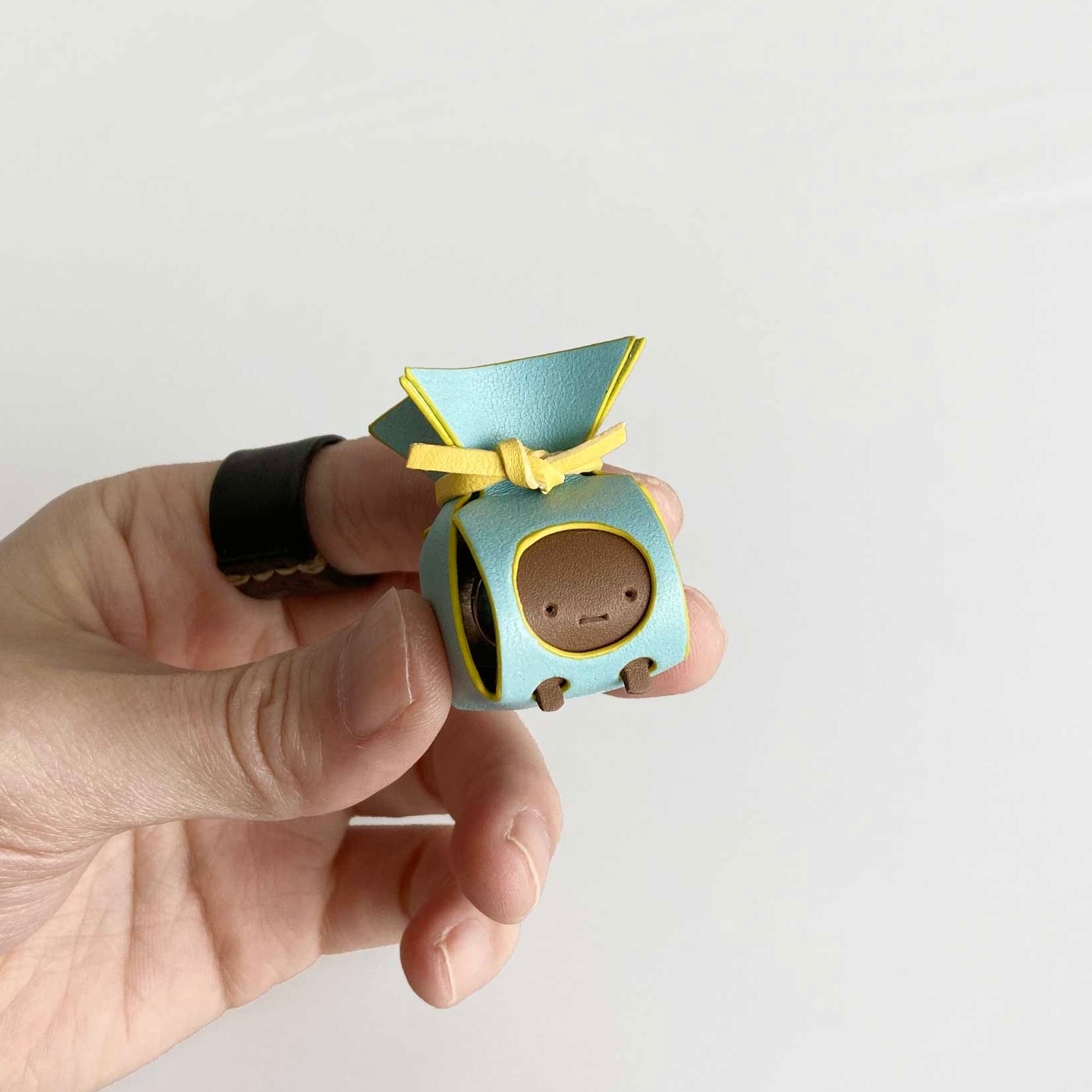 固結びだけ得意な革のミニオブジェ【kokke / こっけ】(パステルブルー×ブラウン×イエロー)