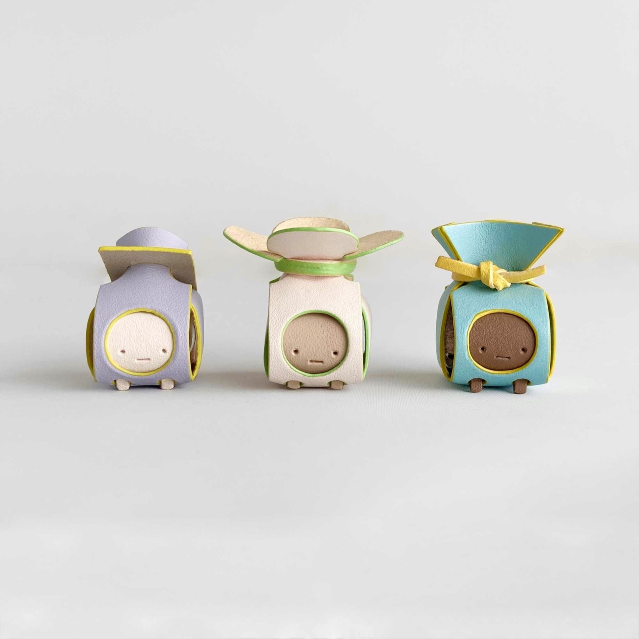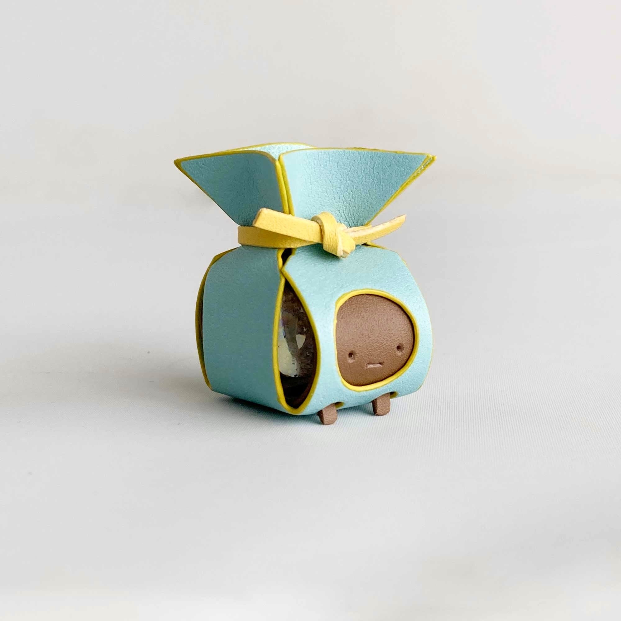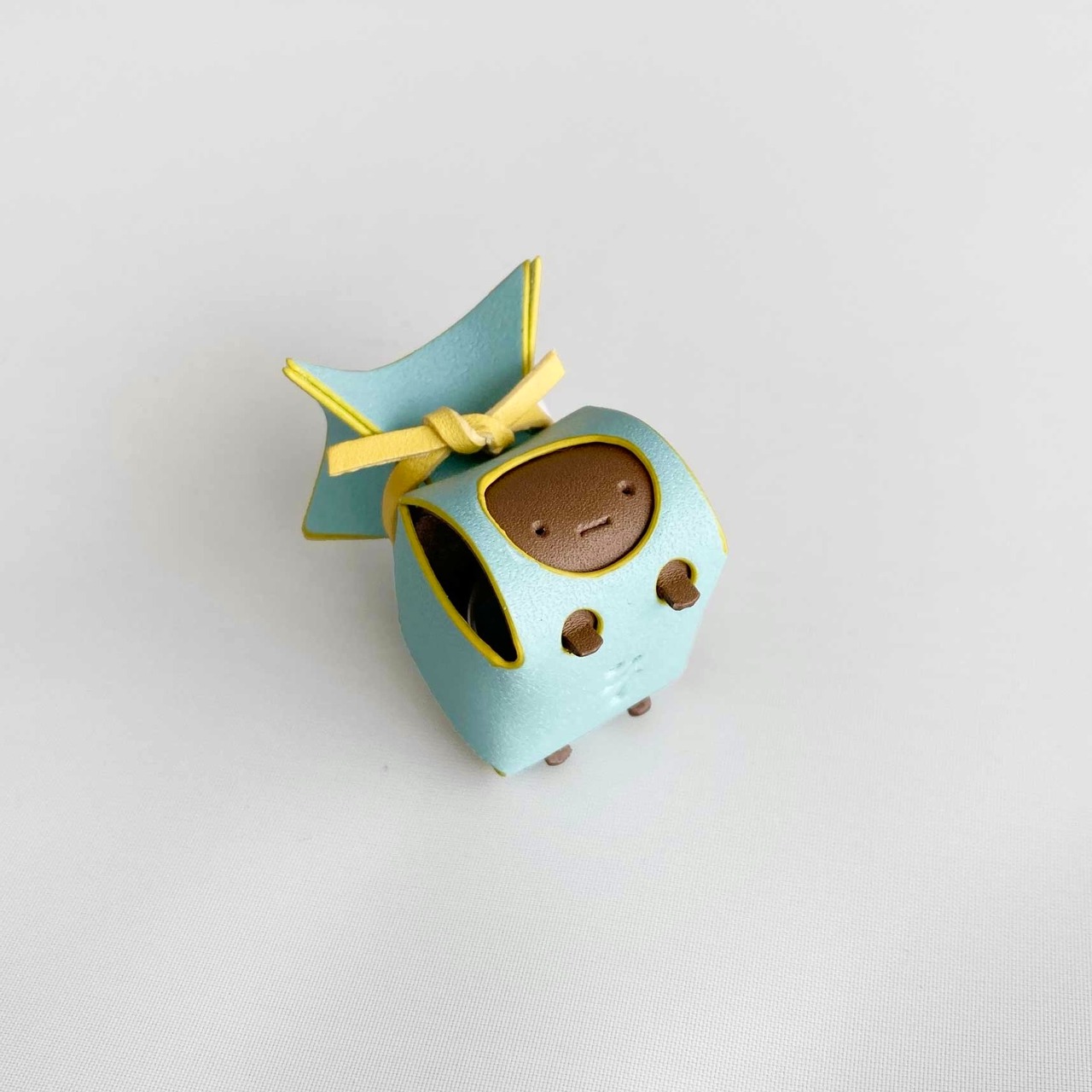 革 レザー 手縫い 手作り ハンドメイド 日本 職人 作家 レザークラフト ハンドクラフト 手仕事 革細工 革小物 ギフト プレゼント 誕生日 記念日 クリスマス 新年 バレンタインデー ホワイトデー 新生活 シンプル ミニマム ナチュラル 軽い 金具なし ミニチュア ミニオブジェ 置物 かわいい 顔 表情 革婚式 ペア 結ぶ チョコミント