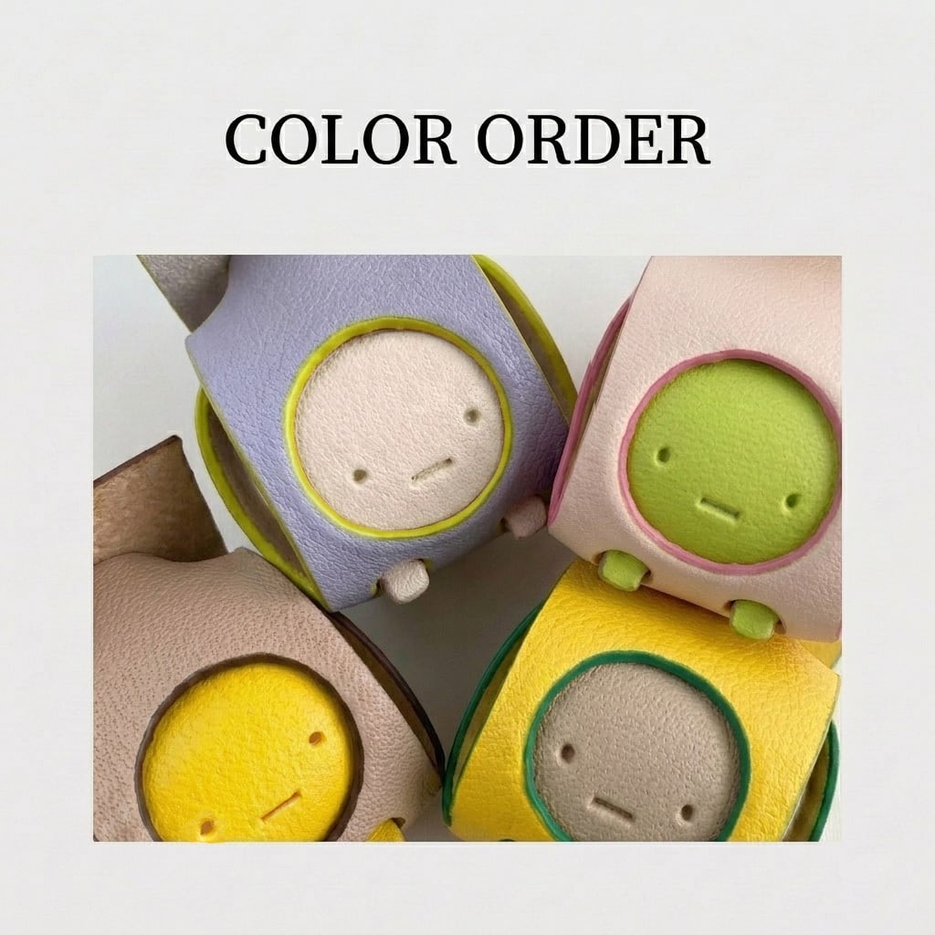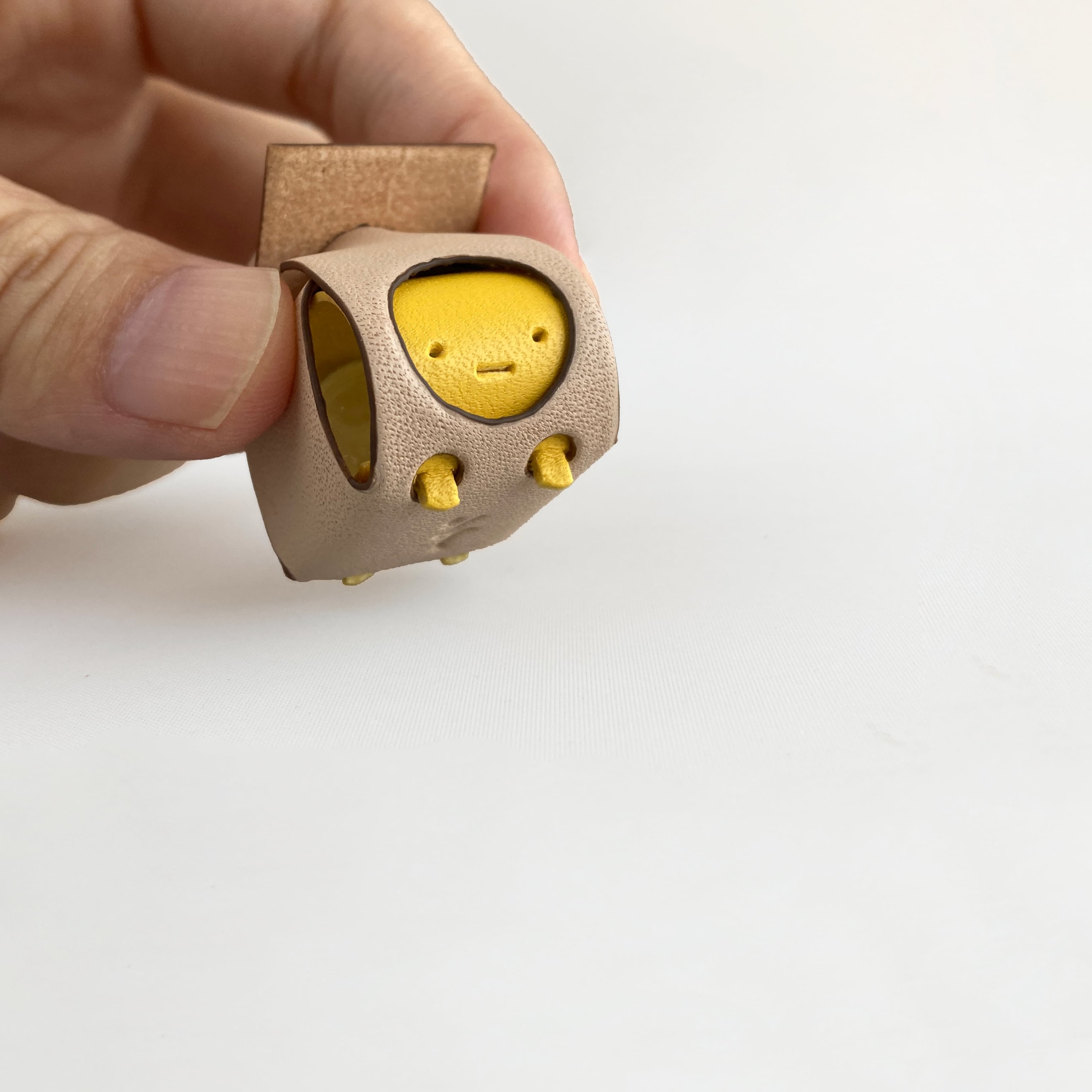 革 レザー 手縫い 手作り ハンドメイド 日本 職人 作家 レザークラフト ハンドクラフト 手仕事 革細工 革小物 ギフト プレゼント 誕生日 記念日 クリスマス 新年 シンプル ミニマム ナチュラル 軽い 金具なし ミニチュア ミニオブジェ 置物 かわいい 顔 表情 革婚式 ペア 色を選べる
