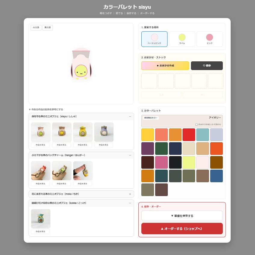 悩んだら「2. おまかせ・ストック」の「🍬 おまかせ作成」を押してみてください。思いがけない可愛い組み合わせに出会えるかもしれません。