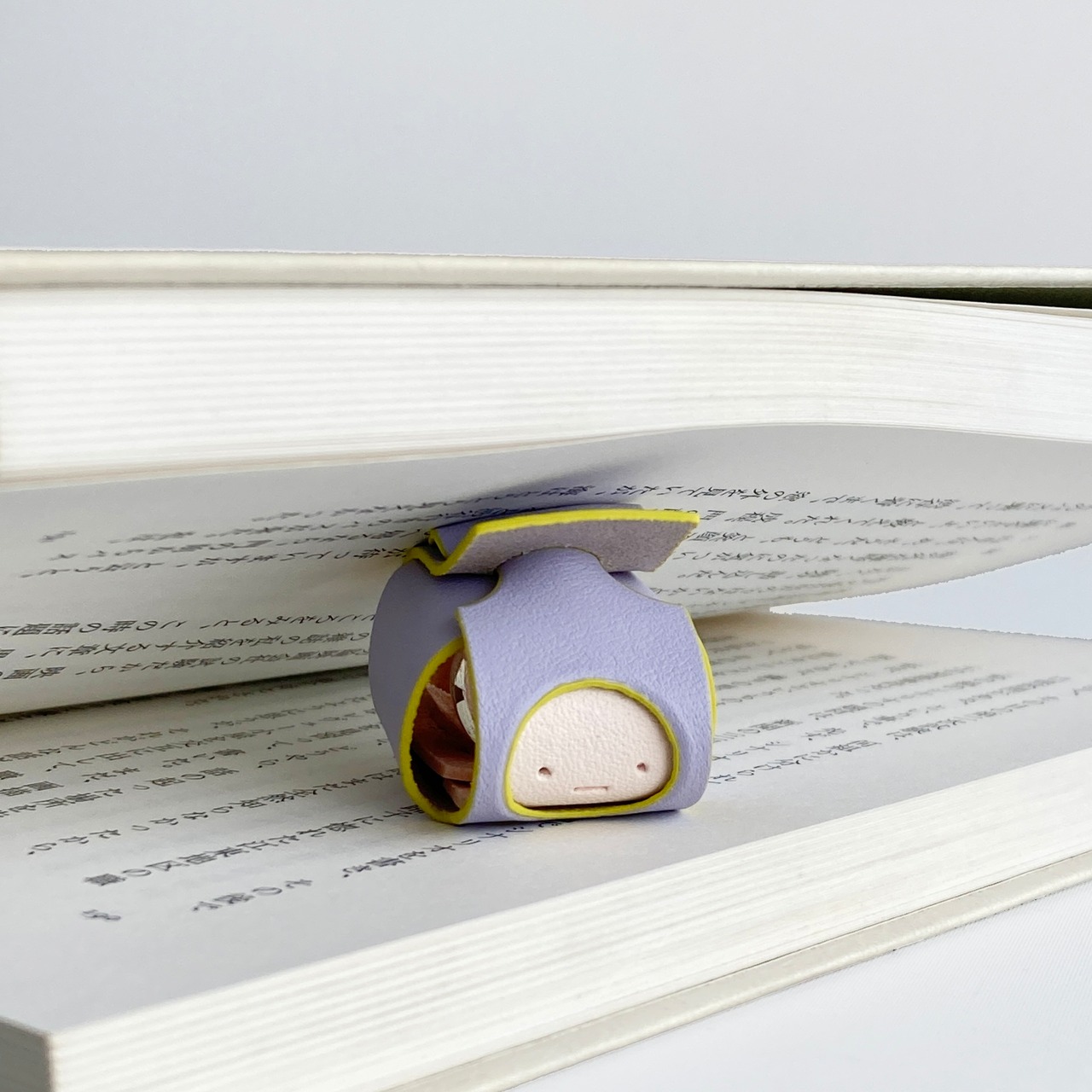 無垢な顔と手足以外をすべて覆い隠し、何かから身を守る革のミニオブジェ「sisyu」。